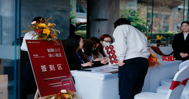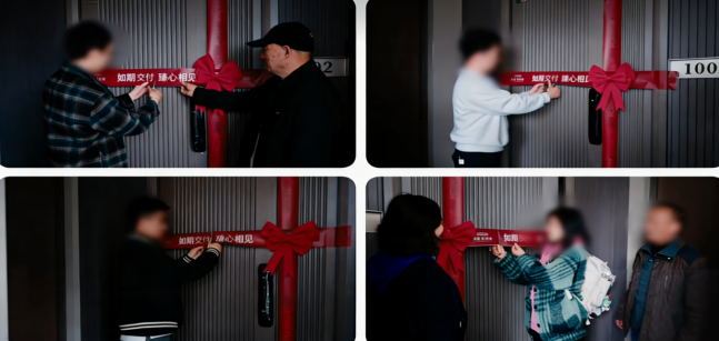 仪式感场景营造:为提升交付体验,我们配合项目方对交付现场进行装饰升级,从大门花艺布置到入户门红绸点缀,用丝丝入扣的细节传递脉脉温情,让业主在满满仪式感中邂逅新家的万般美好。